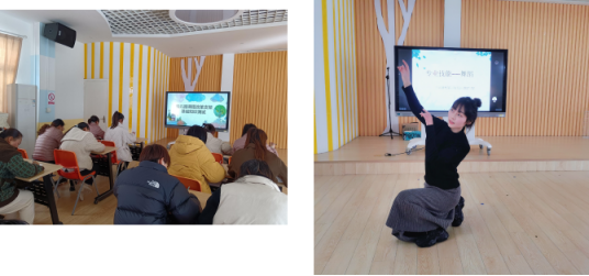 职初教师们以促进新教师专业成长,加强专业舞蹈技能的训练,提高舞蹈创编能力为主题开展舞蹈创编展示活动;青年教师以“幼儿园课程改革”相关理论知识为载体,开展理论知识测试活动;骨干教师们精心设计组织一节集体教学活动,向老师们进行教学活动展示活动。