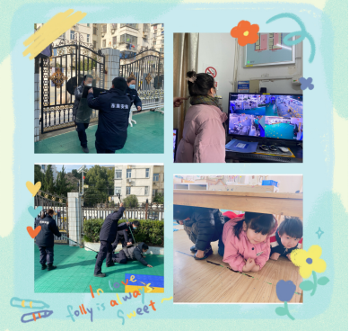 演练前,各班老师对幼儿进行防恐防暴安全知识宣传,帮助幼儿累积相关知识经验,让幼儿知道在遇到“坏人”时采用正确的方式保护自己。情景模拟:有歹徒从幼儿园大门强行进入校园发生暴力冲突,一名保安及值班人员与其对峙阻止其靠近幼儿活动区域,一名保安马上按下“一键式报警”系统进行报警,同时向园部汇报,迅速拉响紧急疏散防空警报,并发出全园疏散避险通知。各班教师带领幼儿快速回到室内将门窗紧闭,清点人数,并堵住教室门,防止暴恐分子破门而入,并组织宝贝们躲藏起来。幼儿园安保人员合力行动,手持盾牌、钢叉等防暴工具将“暴徒”制服,整个过程中大家临危不乱,与“暴徒”交涉、周旋,最终制服“暴徒”,竭力保护全体师幼的安全。