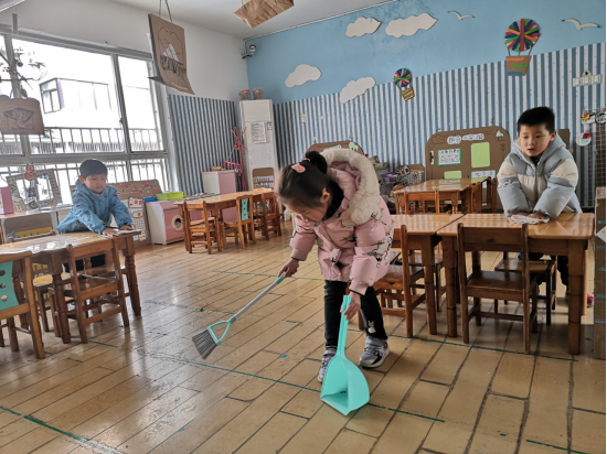 区域活动后,值日生整理图书架、玩具柜,让每一本图片、每一样玩具都井然有序摆放好。餐前,值日生分发餐具,餐后,擦桌子、扫地,不怕脏不怕累,做力所能及的事,成为班级小主人。一天的值日工作结束了,孩子们说:“能帮助他人我感觉很高兴”。“和小伙伴一起擦桌子感觉很快乐。”“每本书放得整整齐齐,我太开心了......。”