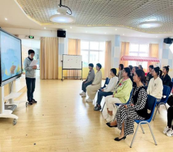 活动围绕以下问题展开观察与思考:场地的分布和安排、材料的提供和摆放、教师的站位以及对儿童行为的观察与指导。在学习和研讨的过程中教师聚精会神,全心投入学习,边看边思边记录,时不时和其他老师围在一起探讨交流自己的想法和问题。老师们一致认为,晨间锻炼需要遵循安全性、趣味性、灵活性、教育性等原则。在内容的选择上可以充分运用传统游戏、民间游戏、自选游戏、自编游戏等吸引幼儿兴趣的游戏。
