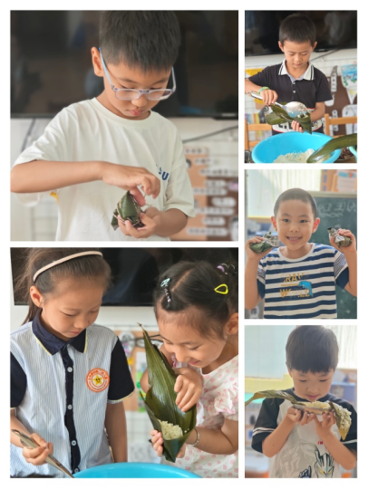 初次包粽子,幼儿们热情高涨、兴趣十足,虽然他们还有点手忙脚乱,但他们的神情都无比专注。通过端午节的包粽子活动,不但传承了技艺,而且还感受到了浓浓的节日的氛围。