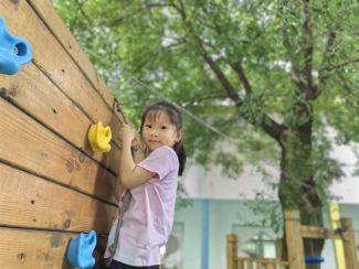 活动中,幼儿们根据自己的兴趣选择各自的户外器械、比如攀爬架、荡桥、滑索、组合木梯等……其中攀爬架和荡桥最受幼儿们的喜欢,攀爬时需要幼儿手、脚、眼及身体的综合配合,使他们身体更灵活、反应更敏捷;荡桥,可以锻炼幼儿的平衡能力和协调能力。幼儿在荡桥游戏的过程中不仅能为大动作发展打下基础,还能领会到运动的乐趣和与他人合作的好处。