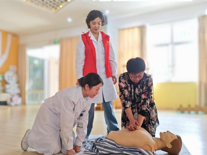 为保证幼儿的健康和安全,防止意外伤害的发生,提升全体教职工应急救护的能力。姑苏区教体文旅委下属三元新村第二幼儿园于2023年10月26日中午邀请,白莲社区卫生服务中心总护士长何瑛(副主任护师)、市立医院北区急诊科工作经验15年护师郑娇等众多护理工作者,深入我园给全园教职工开展《急救技能进校园》专题知识讲座。