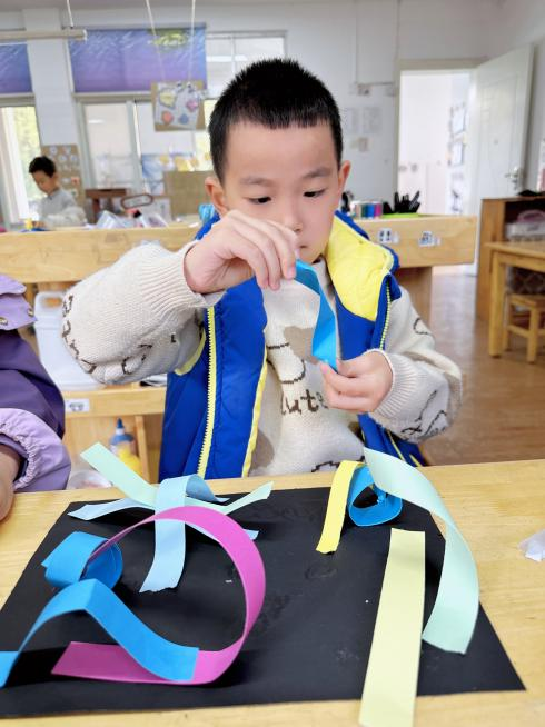 《3-6岁儿童发展指南》指出“艺术是人类感受美、表现美和创造美的重要形式,也是表达自己对周围世界的认识和情绪态度的独特方式。”而美术就是幼儿表达自己对世界认知和情感态度的另一种“语言”之一。于是姑苏区教体文旅委下属三元新村第二幼儿园大班幼儿开展了“小纸条,大画作”美术装饰活动。