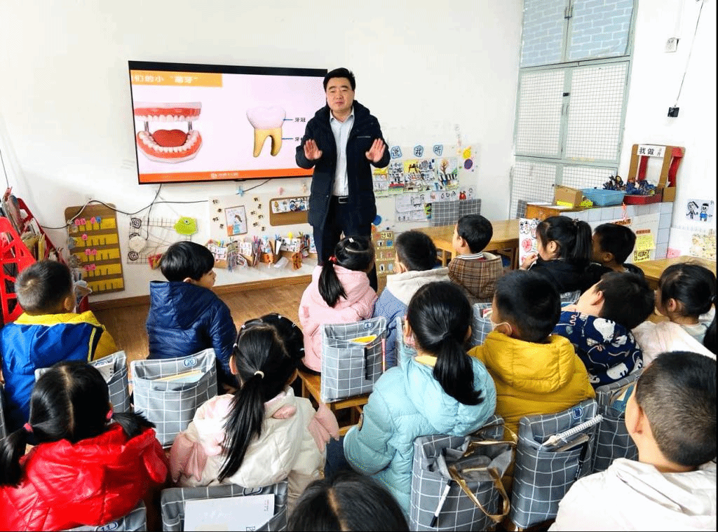 本次活动诚挚的邀请了薇薇的爸爸来园为幼儿们讲解关于保护牙齿方面的知识,薇薇爸爸特意准备了精美的PPT,幼儿们通过直观的图片结合自己的生活经验,了解了我们的牙齿、牙龈......薇薇爸爸还形象的把我们牙齿比作鸡蛋,牙釉质就相当于蛋壳、牙本质就是蛋白、牙髓就是蛋黄,幼儿们更加直观的明白了牙齿的组成部分。正好大班幼儿很多都在换牙期,薇薇爸爸借机鼓励幼儿们多咀嚼食物、多吃水果蔬菜等健康食品等等。最后大家一起学习了正确刷牙的方法,薇薇爸爸还为每一位小朋友检查了牙齿,鼓励幼儿们要保护好自己的牙齿。
