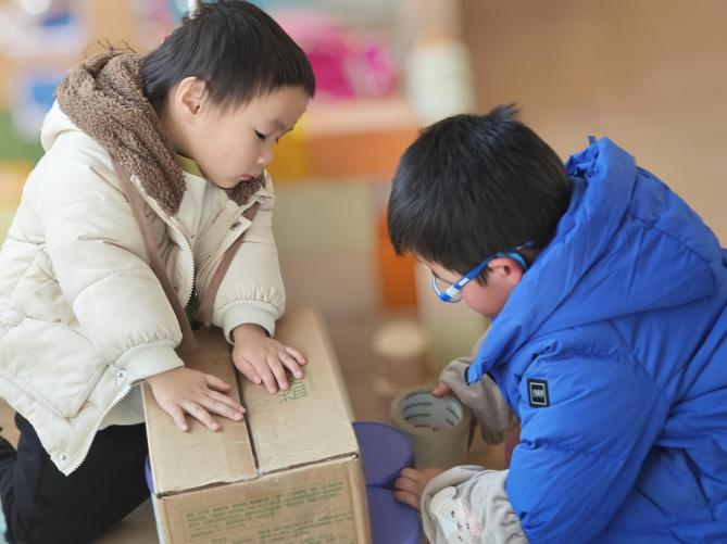 活动中幼儿们一起观察小板凳,分享自己的发现。在制作中介绍自己的方法、观察他人的作品。整个探究活动不仅是科学、技术、工程、数学等领域的融合,也加强了语言、社会、艺术等领域的联系。在交流和运用的过程中,促进了幼儿语言能力的发展。