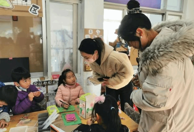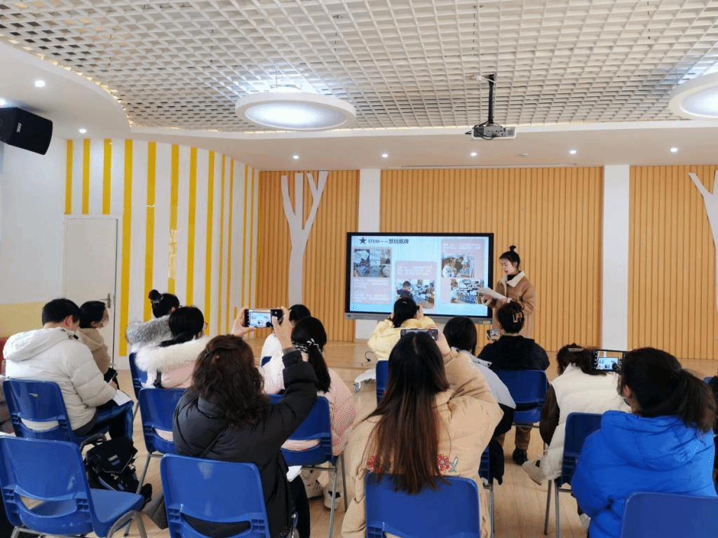 共同体的老师们走进班级,仔细倾听、细心观察。从区域材料的投放、幼儿游戏的计划、教师的指导、幼儿的交流等各方面进行了有针对性的参观和记录。教师们纷纷表示各班从问题情境的设计、幼儿方案的制定、制作以及最后的作品展示环节,都充分体现了STEM的教学理念。以问题学习为特征,围绕区域游戏里发现问题、解决问题,让幼儿体验全新的学习过程。随后老师们齐聚在一起,教师代表分享了年级组将STEM理念融入班级区域游戏的一些思考。