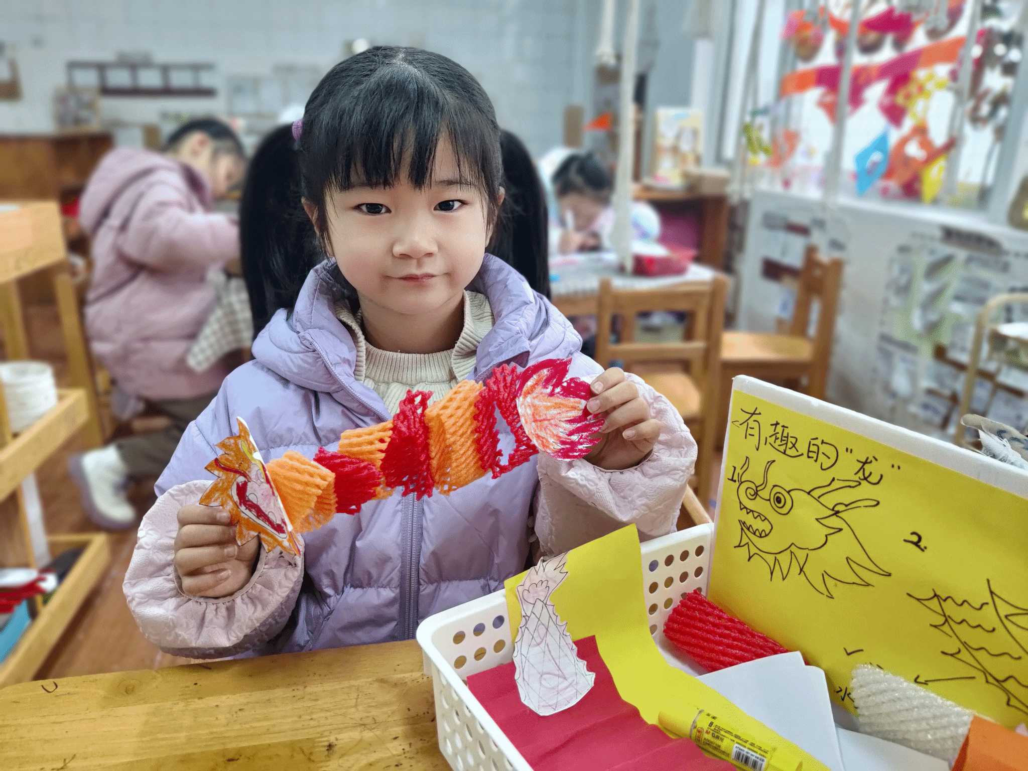 活动中幼儿们通过调查表、讨论等方式,了解了龙抬头的各种习俗,比如吃龙食、剃龙头、放龙灯、围仓粮等习俗。然后用自己喜欢的方式,画一画、剪一剪、贴一贴,制作成一条条长龙,诠释着对民族文化的敬仰。还在二月二这一天,通过品尝龙须面感受传统文化的魅力和乐趣,寓意着顺顺溜溜、平安健康。同时幼儿们通过夹龙珠的游戏,在欢乐的氛围中,锻炼其手眼协调能力的同时,也进一步了解中国传统文化的象征,体验传统游戏的乐趣。