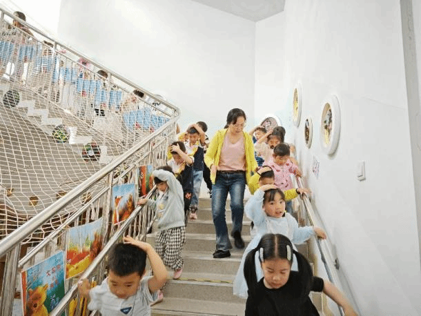 为将防震疏散演练做实做细,幼儿园安全领导小组制定了安全、科学的防震应急演练方案,明确地震应急疏散演练的重要意义。做好安全护导工作,确保演练活动安全、顺利开展。第一次地震警报铃声响起,地震应急避险演练正式开始,全园师幼立即停止活动,以最快速度躲避到安全区域。随着第二次疏散警铃声响起,幼儿在老师的带领下弯腰、护头,迅速且有序沿着指定疏散路线撤离到安全区域。按照逃生路线撤离到安全集合区后,各班老师立刻清点人数,检查是否有受伤幼儿,并向安全负责人汇报撤离情况,确保所有师幼均已安全疏散。