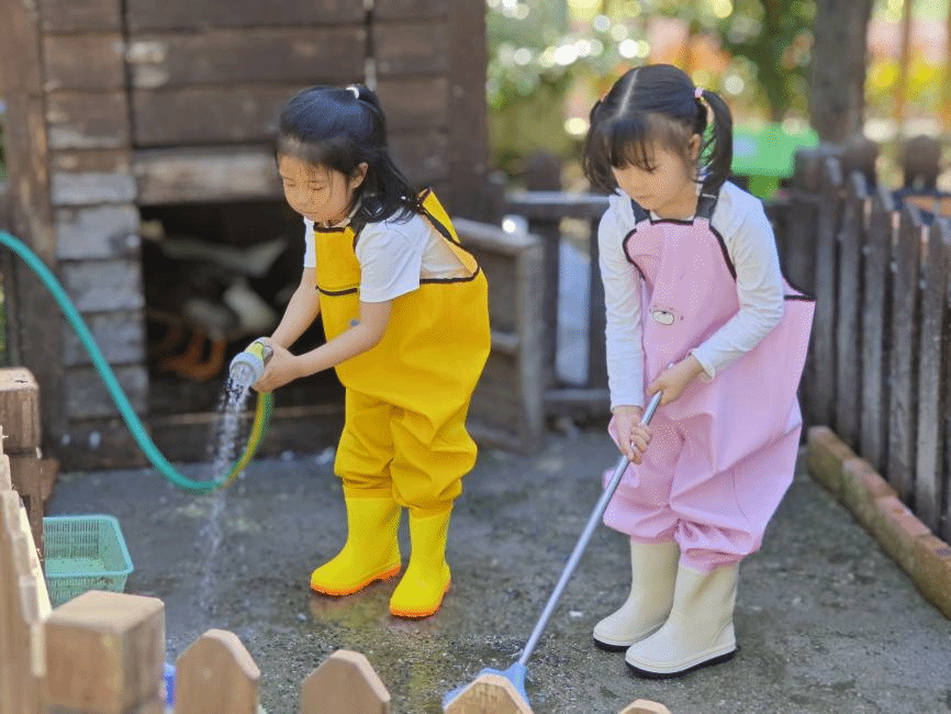 可爱的幼儿们积极参与到了饲养鸭子的活动中来。他们小心翼翼地给鸭子喂粮食,看着鸭子们欢快地啄食,幼儿们的脸上洋溢着开心的笑容。更为特别的是,为了更好地照顾鸭子,幼儿们还穿上了特制的防护服,勇敢地走进鸭舍,亲自给鸭子清理地面。他们小小的身影在鸭舍中忙碌着,充满了认真和专注。虽然动作稍显稚嫩,但那份对小生命的关爱和责任感却无比真挚。