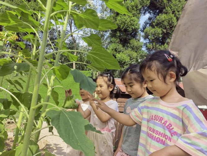 生活中,每一事每一物都蕴藏着教育契机。小小的向日葵带给了幼儿们观察和创作的空间。幼儿们通过直接感知,亲身体验、实际操作,走进自然,创造美好。