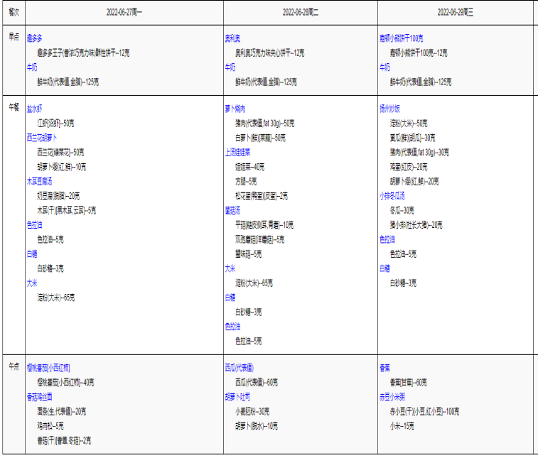 三元新村第二幼儿园幼儿第六周食谱