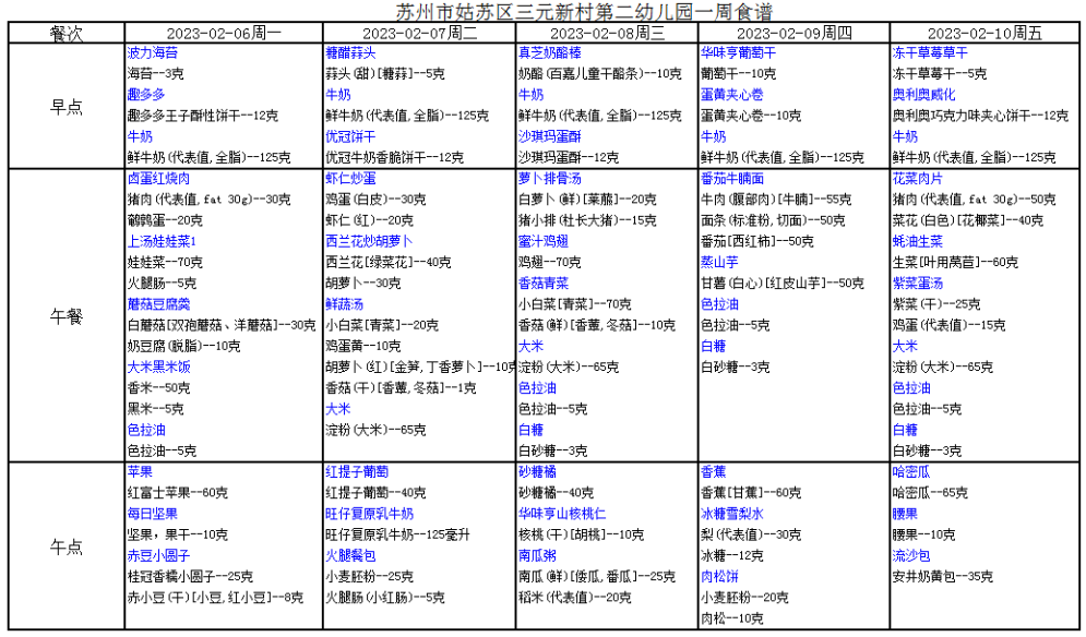 幼儿食谱第一周(2.6~2.10)