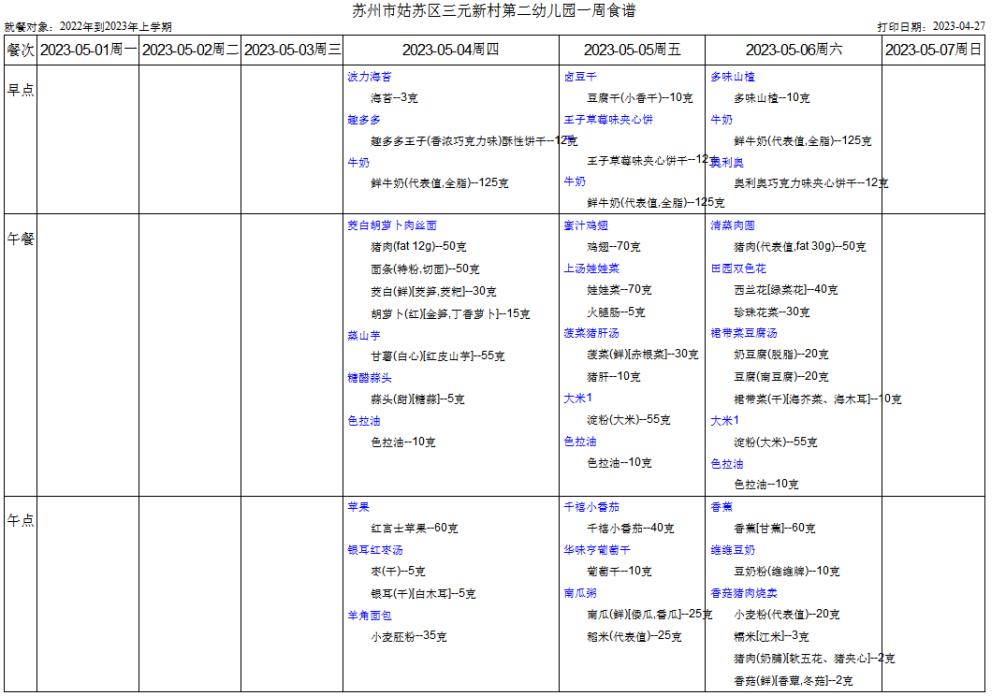 第十三周幼儿食谱(5.4——5.6)