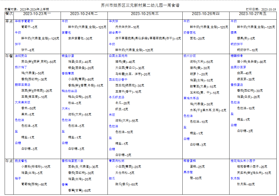 幼儿食谱第八周(10.23——10.27)