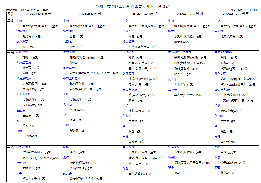 幼儿食谱第五周 (3.18——3.22)