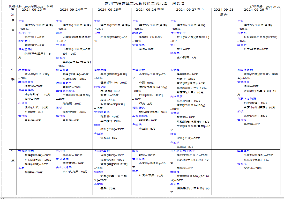 幼儿食谱第四、五周(923——9.29)