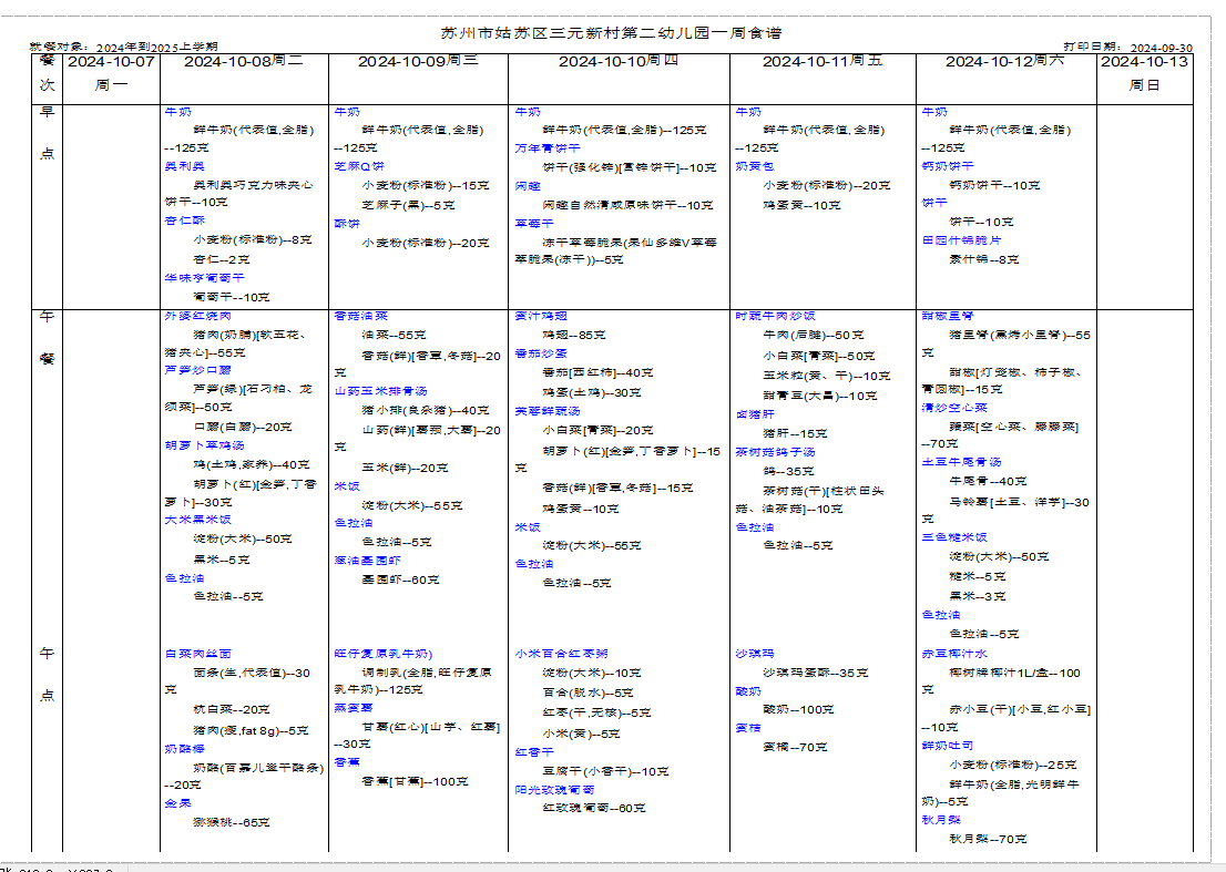 幼儿食谱第六周(10.8—10.12)