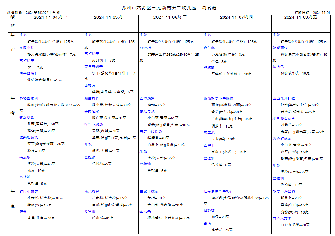 幼儿食谱第十周(11.4——11.8)