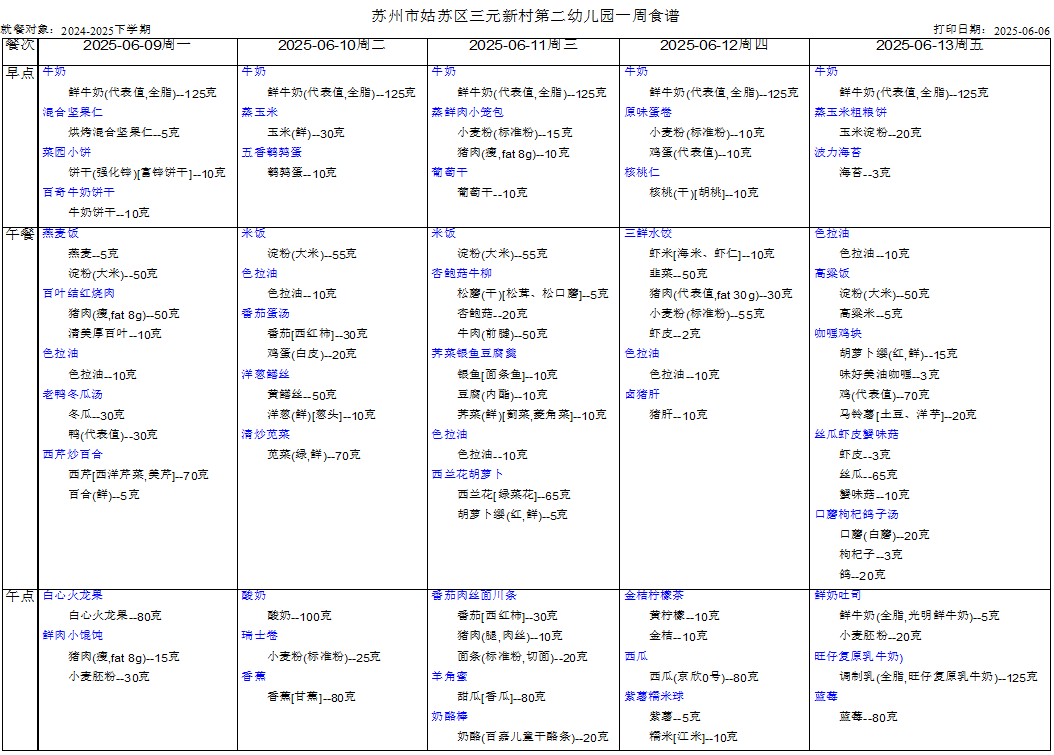 幼儿第十八周食谱(6.9-6.13)
