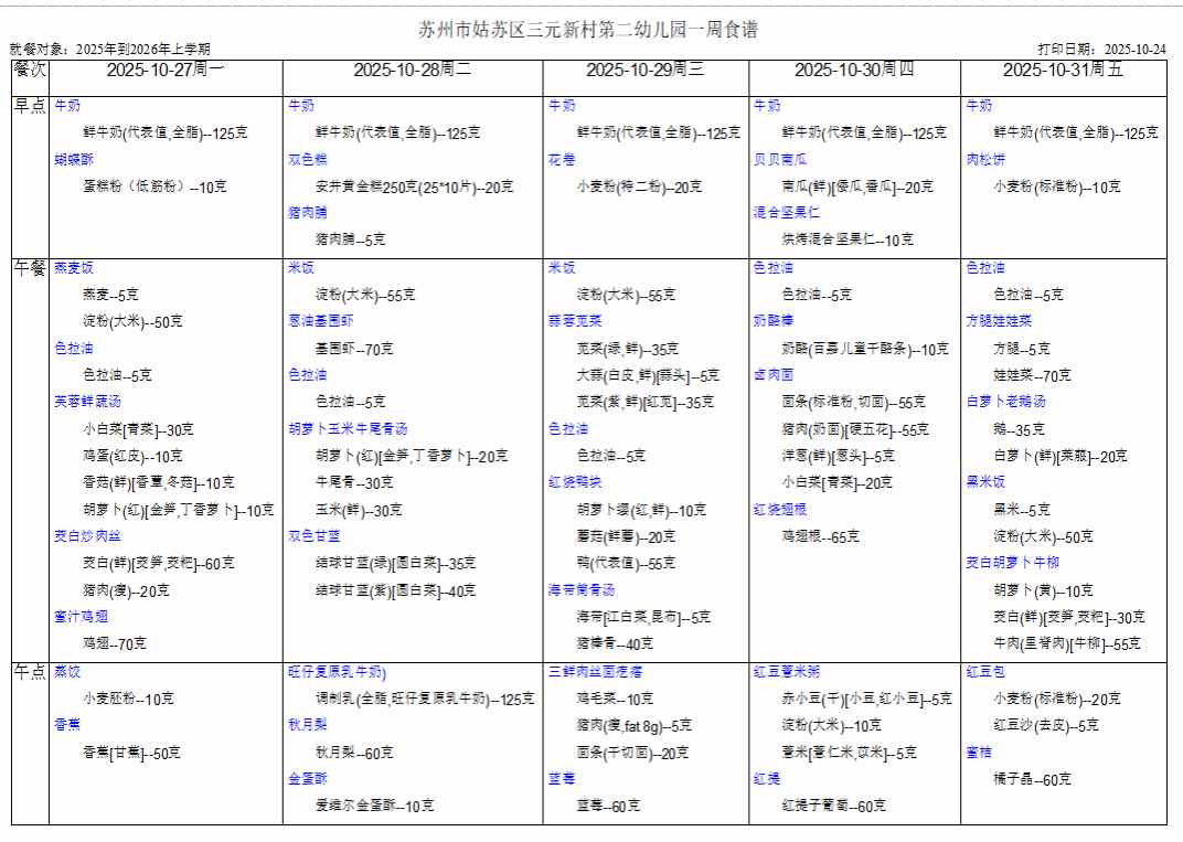 幼儿第九周食谱(10.27-10.31)