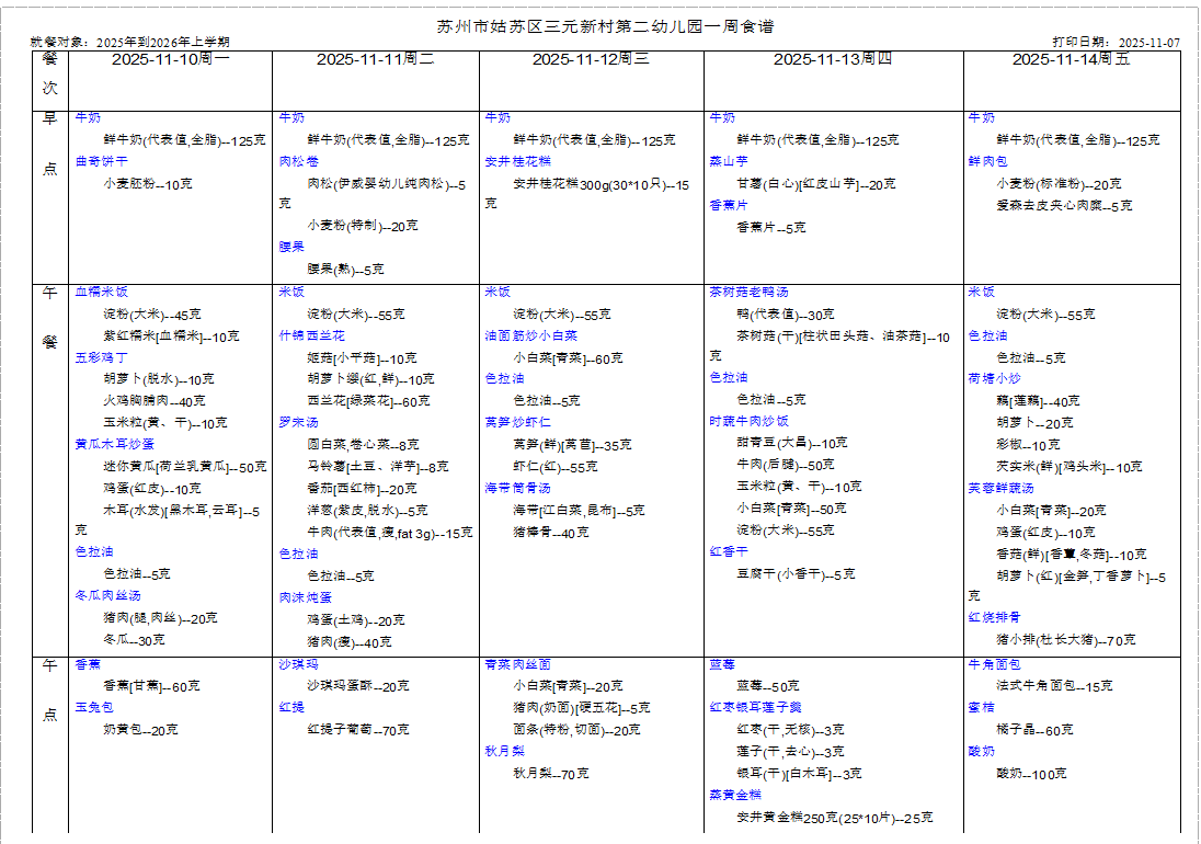 幼儿第十一周食谱(11.10-11.14)