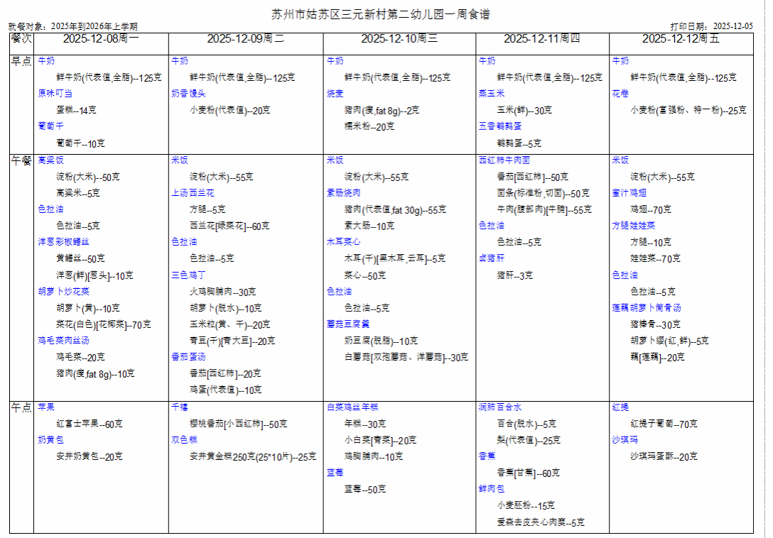 幼儿第十五周食谱(12.8--12.12)