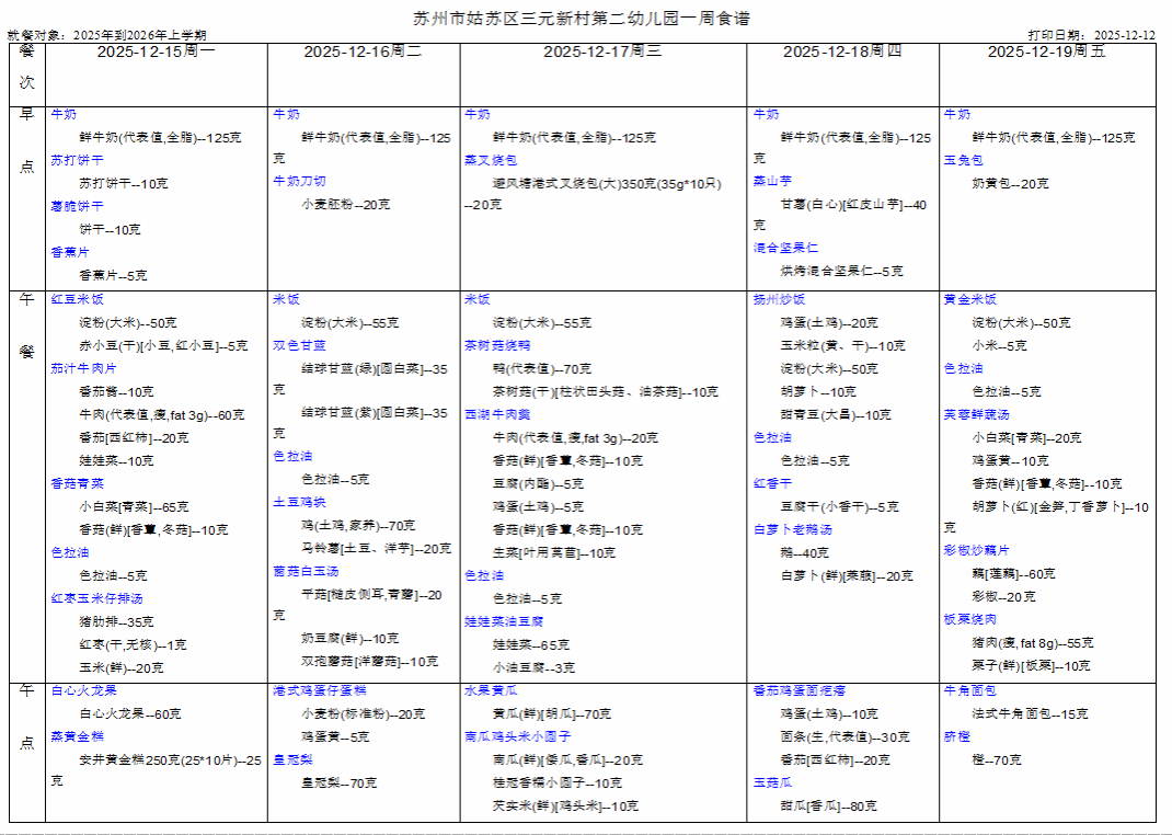 幼儿第十六周食谱(12.15-12.19)