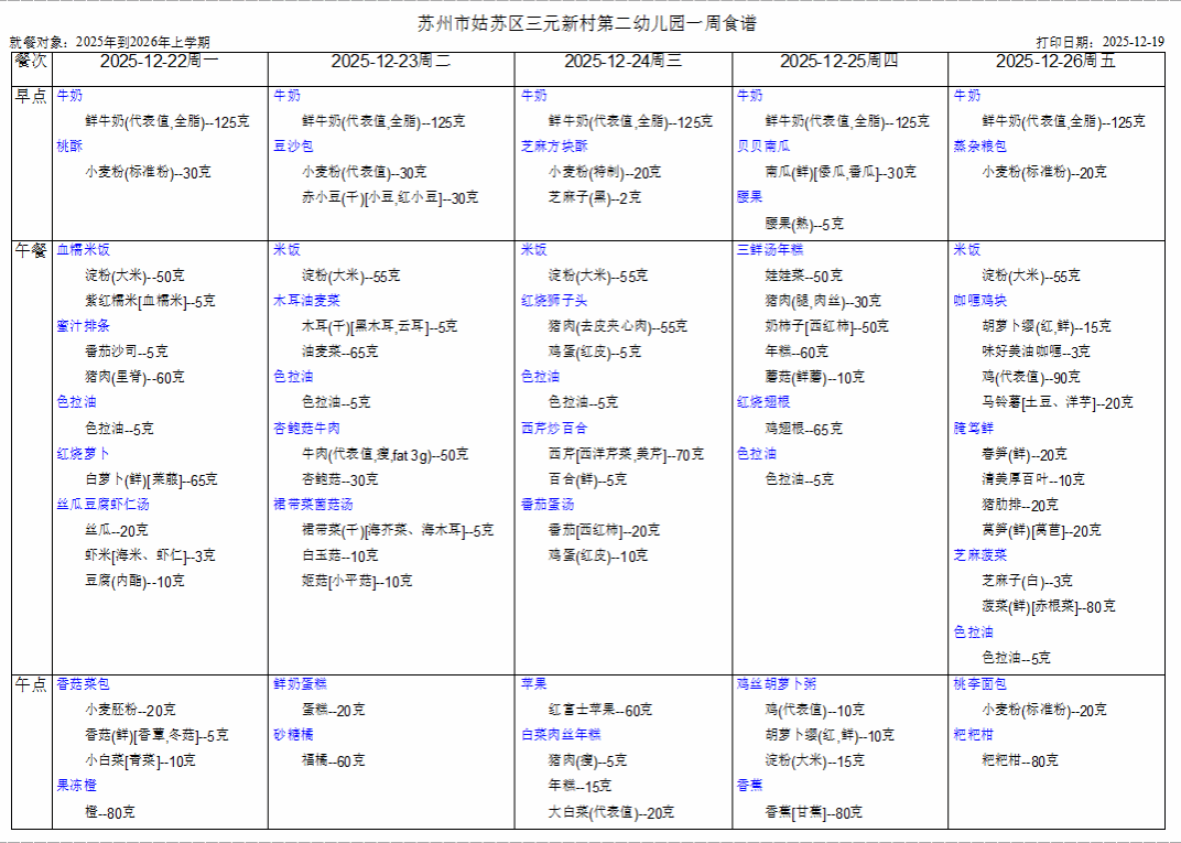 幼儿第十七周食谱(12.22-12.26)