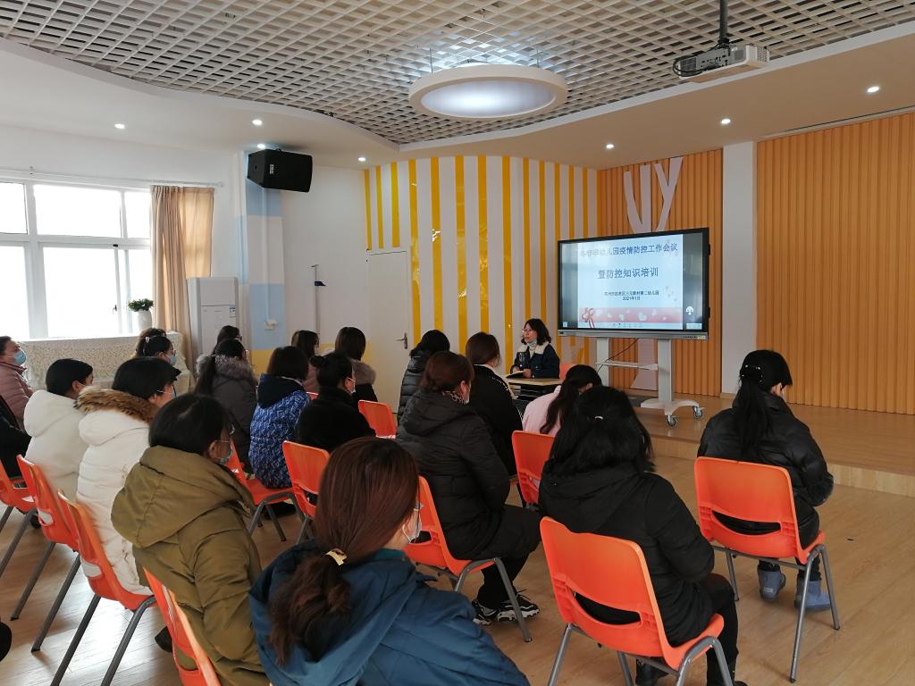 为贯彻国务院联防联控机制综合组《关于做好2021年元旦和春节期间新冠肺炎疫情防控工作的通知》(国卫明电[2020]463号)精神,《省教育厅办公室关于做好2021年中小学幼儿园寒假工作的通知》(苏教办基函〔2021〕1号)精神,落实省、市关于常态化疫情防控工作要求,1月12日三元新村第二幼儿园组织全体教职工召开了“冬春季幼儿园疫情防控工作会议暨防控知识培训工作专题会”。