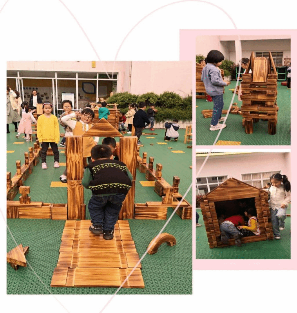 建构游戏是孩子们喜欢的游戏之一,它具有操作性强,合作性突出,创造性高等特点。通过建构游戏不仅能丰富孩子们的主观体验,发展动手能力和建构技能,更重要的是,能使孩子在协商、谦让、交换的游戏氛围中,学会分享与合作,尝试开拓与创新,体验成功与挫折,从而实现合作交往能力的提高以及幼儿个性和谐全面发展。孩子们在阅读绘本《母鸡萝丝去散步》时,对绘本有趣的内容十分感兴趣,想在建构游戏中将故事中的蜂房、院子、母鸡的家进行搭建。在搭建的过程中孩子们能将认知,情感和行为融为一体,尝试把绘本的情境以游戏的方式呈现。孩子们从中获得的不仅是建构技能,更是综合能力的提升与发展。