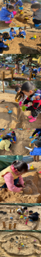 在一次沙池游戏中,孩子们围绕“城堡”展开了建构,孩子们从讨论保护城堡的方法开始,就坚持一起解决、寻找最优方案。