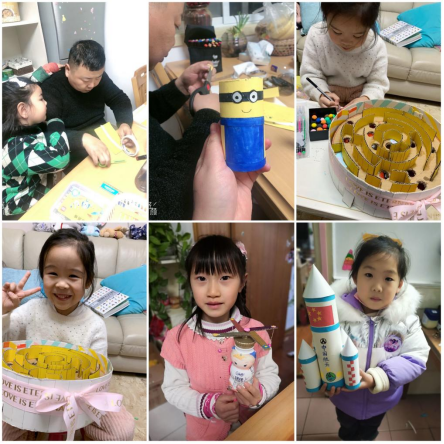 为增强家长和孩子们的环保意识,提高幼儿的动手能力,增进亲子关系,鼓励幼儿与家长一起利用生活中的废旧材料进行创造再利用,孩子们和家长一起“变废为宝”,制作了形式多样的亲子手工作品。 各种各样的材料和废旧物品通过家长、孩子们的巧妙构思和利用,变成了好玩的玩具、漂亮的饰品和摆件,充分体现了自主创作的理念。此次活动的开展,不仅为家长提供了更多与孩子亲密接触和展示创意智慧平台的机会,让孩子更深入了解垃圾分类,变废为宝的力量,同时也给每个孩家长心中留下了一份收获的喜悦和美好的记忆。