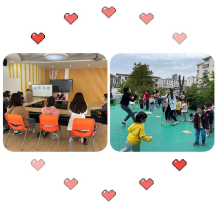 疫情期间,防范意识不能够松懈,家长在入园前统一佩戴口罩,查看苏康码进行测温登记,有序进园。在观摩区域活动中,我们的家长能够进一步观察孩子的表现。在体育游戏“造新房”中,“大孩子”、小孩子都一起参与到游戏中来,体验体育游戏带给我们的快乐。