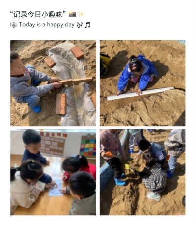 他们在沙堆里任意地掏洞、挖沟,有趣的游戏促使他们更多地“发明”不同的玩法,幼儿的创造意识和能力也渐渐成长起来。孩子们在沙水区游戏中学会了如何与人交往沟通,学会分享与合作,并且锻炼了孩子们的规则意识。