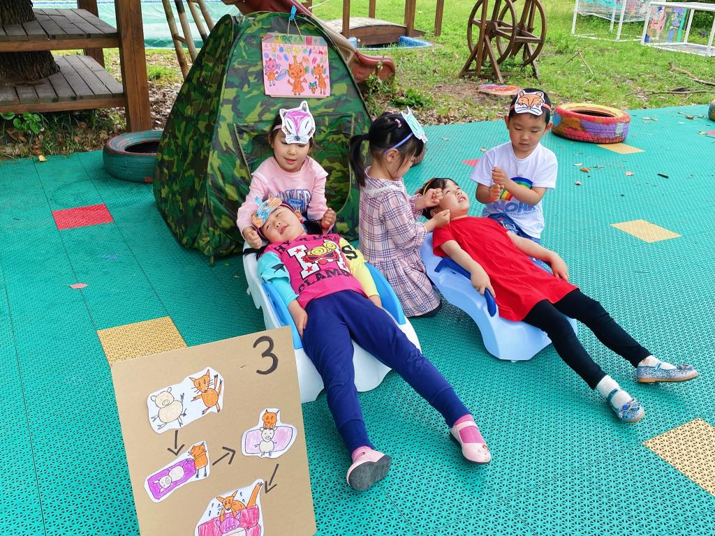 绘本故事是孩子们心中的童话殿堂,承载着孩子们一个又一个或幼稚或可爱的美梦。绘本对儿童发展具有独特的价值。通过绘本表演更能以生动的形式帮助儿童打开阅读的大门,丰富孩儿童的生活、情感体验,同时提高思维、认知、欣赏等能力。 学期初孩子们投票选择了绘本《我的幸运一天》作为蓝本进行绘本故事的表演,前期孩子们和老师一起将绘本编辑成绘本剧,对台词、角色和剧情进行编撰,接着来到幼儿园的室外游戏场,一起设计舞台、制作道具、分配角色、合作表演。在阵阵欢声笑语中孩子们的绘本剧表演开幕啦!