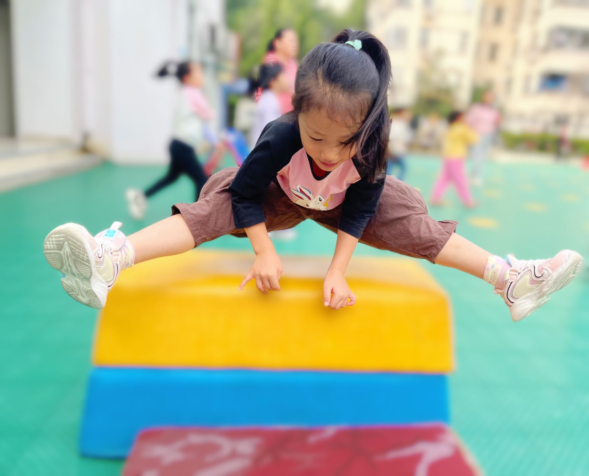 在晨间锻炼之际,幼儿园将走、跑、跳、爬、平衡等基本动作贯穿丰富多样的户外材料之中,热情鼓励幼儿自由结伴,大胆进行自主探索与尝试。幼儿们在各类跳跃活动中,腿部肌肉力量不断增强;借助投篮、沙包投掷等趣味游戏,手眼协调能力与手部力量得以显著提升。与此同时,攀爬的过程也充分锻炼了他们的肌肉,进一步提高了体能。