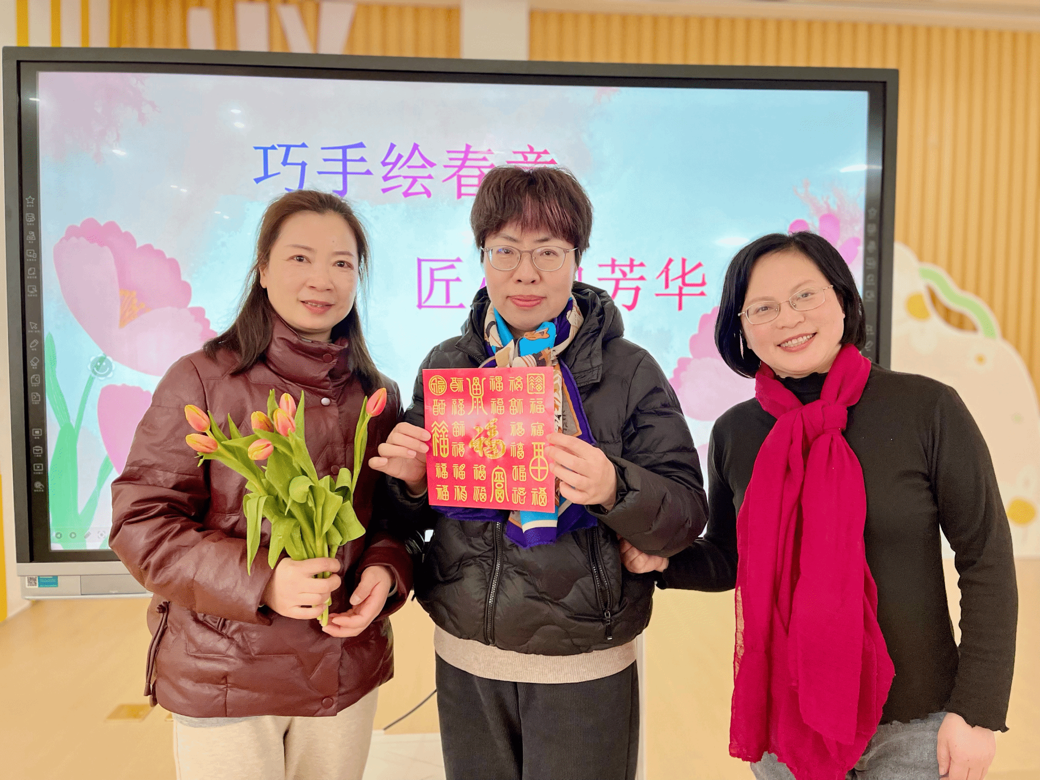 活动当日,一楼多功能教室被精心布置成充满节日氛围的场地。女教师们领取了象征美丽、幸福的郁金香,现场洋溢着欢乐的气氛。在随后的手工体验环节,教师们根据个人喜好挑选模板图案,在指定材料上认真进行描金创作,沉浸于传统工艺的独特魅力之中。创作结束后,大家积极分享交流,现场气氛热烈,不仅增进了彼此间的了解,也让传统文化在交流中得以彰显。