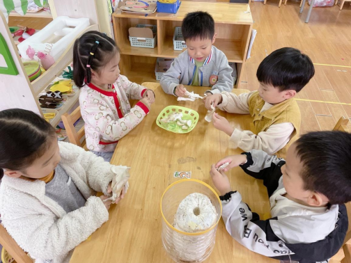 在整个菌菇培养过程中,教师通过引导幼儿积极参与探索活动,养成幼儿的问题意识,发展幼儿的观察、表达能力,幼儿运用观察、记录、比较等方法不断发现问题,解决问题,从中体会大自然的奇妙!
