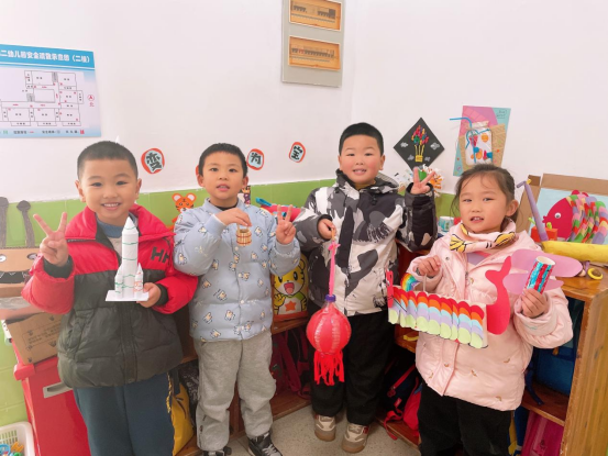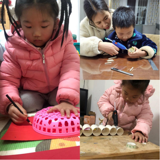 新年的红包皮、废弃的塑料瓶盖、用过的吸管、果皮、丢弃的彩纸……这些看上去不起眼的废品,在幼儿们的手里,经过一番制作,就变成了一件件工艺品。有小灯笼、插花、福字、小桔灯、贺岁金鱼、美丽的窗花剪纸等等,真的是巧夺天工啊!制作手工艺术品,让幼儿一边玩一边学习,通过做手工艺品,将低碳环保的生活理念推广幼儿动手动脑的能力,丰富了幼儿多彩的元旦假期生活,拓展了动手活动空间,又为幼儿迎接新的一年增添了浓墨重彩的一笔!