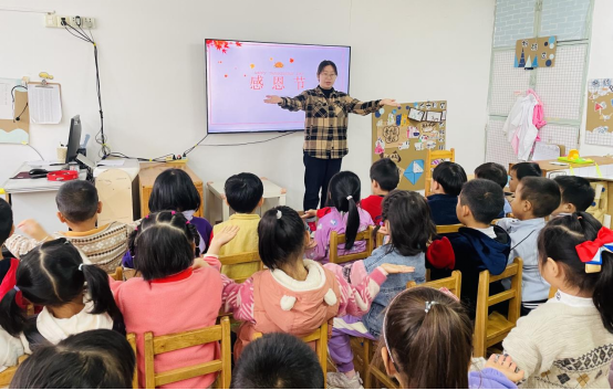 感恩节当天,和幼儿一起营造“爱”的氛围,开展“爱”的教育!在幼儿园一日生活中,老师们运用“故事、谈话、儿歌、”等多种途径,引导孩子了解感恩节的由来,引发孩子主动关注周围人对自己成长付出的一切,用好听的话说一句感恩的话、听好听的故事《口渴的蚂蚁》来表达自己的感恩之心。并和着歌曲“感恩的心”, 认真、专注地用手语表达着自己的感恩之心感谢爸爸、妈妈、爷爷、奶奶、老师、朋友、阳光……,幼儿之间、师幼之间交流着,感动着!