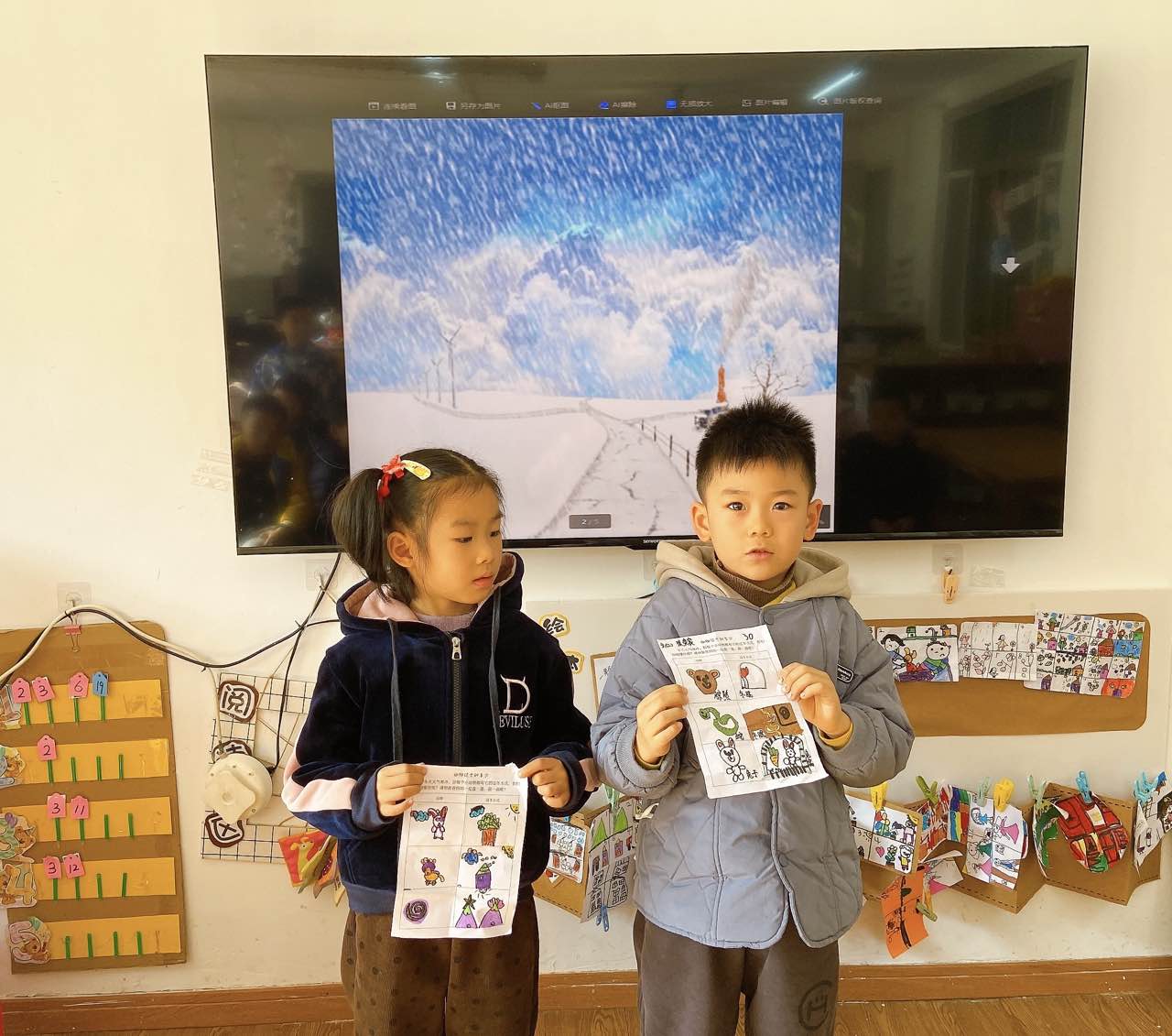 活动开始前,调查了孩子们喜欢的、好奇的小动物过冬方式,孩子们奇思妙想,为小动物们想了穿上厚衣服等等好办法,活动中小朋友们与爸爸妈妈一起查阅资料,验证自己的猜想,发现有的小动物是冬眠过冬,有些小动物会迁徙到温暖的南方过冬,还有小动物会储存很多的粮食躲在洞里过冬......孩子们通过前期对动物过冬方式的了解,争先恐后的想要做小小讲解员为大家介绍,看!孩子们讲解的时候是多么的耀眼!