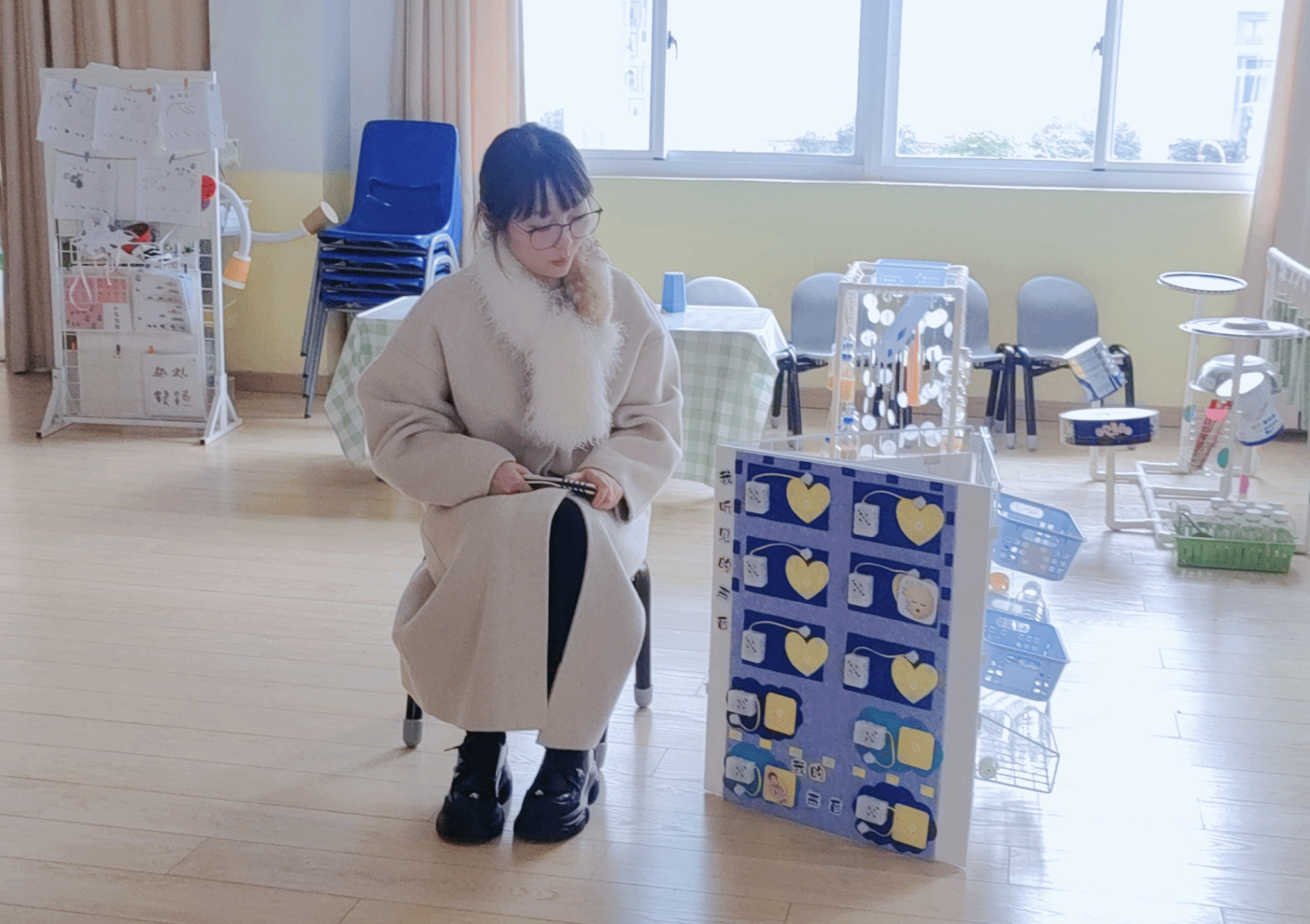 这些充满巧思的自制教具,背后是教师们以幼儿为中心的细致考量。制作前,教师们深入观察本班孩子的兴趣点与发展需求,精心筛选生活中安全无害的废旧材料作为基础。动手过程中,大家反复研究教具的结构与功能,不仅对所有材料进行打磨、消毒,确保边角圆润、使用安全,还巧妙融入色彩、造型等童趣元素吸引幼儿注意力。同时,教师们精准把控教具难度,依据幼儿年龄差异调整设计,让每个阶段的孩子都能在使用中有所收获。