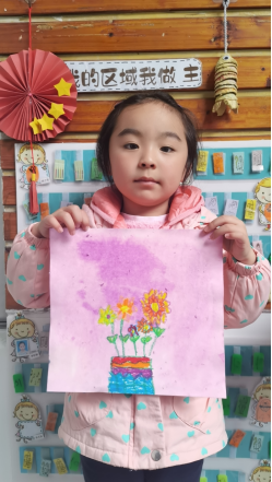 活动前,老师和孩子们一起欣赏各类品种的菊花,了解菊花的特点、品种、品名等,同时孩子们在观察中发现菊花的形态各有不同,有的像蘑菇,有的像烟花,有的像绒球,红的像火,粉的似霞,黄的如金,五颜六色的菊花,瞬间就吸引了孩子们的兴趣,你一言我一语的探索菊花世界的奥秘。都说孩子们是天生的画家,他们拿上美术工具认真专注起来,一朵朵美丽的菊花在孩子们笔下栩栩生辉、美不胜收,老师始终充当着引导者的角色,激发着幼儿的绘画热情,大胆创作,每个孩子眼中都有一朵不一样的、特别的菊花。
