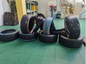 轮胎是一种低结构材料,它具有安全环保、简约耐用、随意组合的特点。轮胎是一种可移动的器械,它并不固定于某一场所,可随意置放于任何场地之中,并且也不拘泥于某种固定的存在形式,方便幼儿游戏使用。快来一起看看大三班小朋友们趣玩轮胎的精彩瞬间吧!