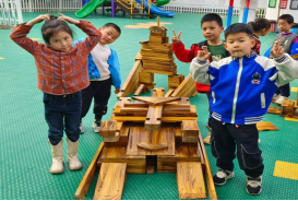 在幼儿园,建构游戏被誉为“塑造工程师的活动”,操作、思维、艺术和创造在建构游戏中融为一体。在活动中我们积极与幼儿对话,从幼儿的兴趣、需要入手。让幼儿在沐浴阳光,呼吸新鲜空气的前提下,开展了户外大型建构活动,为幼儿营造一个自我提升的环境。促进幼儿创造能力、动作的协调性、灵敏性的发展。