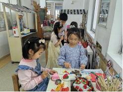 结合主题活动目标,师幼共同商讨与之相吻合的角色游戏主题。幼儿自主选择游戏角色、协商游戏分工、自选游戏材料开展游戏。在游戏的过程中,扮演工作人员的幼儿们认真的做好自己的本职工作,扮演小顾客的幼儿则快乐地穿梭在各行各业的当中,有序且愉快的游戏着……活动结束之后孩子们主动收拾游戏材料,整理游戏场地。师幼共同分享游戏经验、反思问题并讨论解决。角色游戏不仅提高了幼儿参与社会活动的愿望,还帮助幼儿积累社会生活的经验。促进幼儿个性与能力的发展,让幼儿在角色游戏中有所收获、有所成长。