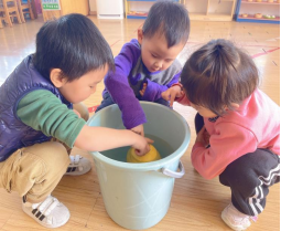 在班本课程的实施中,我们根据幼儿年龄特点,结合了指南,围绕幼儿一日生活各个环节展开实践。从幼儿的兴趣点出发,生成了一系列的集体课程和区域、户外等游戏……运柚子、沉柚子、画柚子、剥柚子、柚子帽、柚子大变身通过一次次的游戏,孩子们有了竞争的意识,知道了团结的力量。