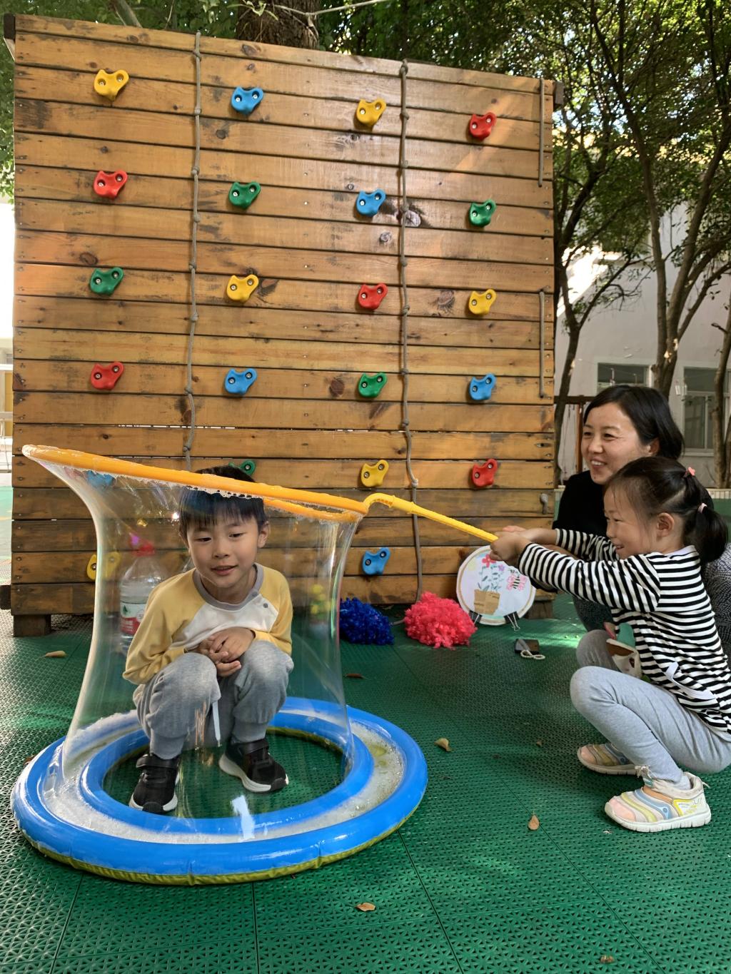 玩泡泡一直都是孩子们最喜欢的游戏之一,每个孩子对泡泡都充满了好奇心,都期盼着能和好朋友在泡泡的世界里开开心心的游戏。三元新村第二幼儿园中一班开展了欢乐泡泡秀的活动,让小朋友在阳光下尽情地和伙伴一起,与五彩的泡泡做游戏。奇妙的泡泡之旅会让小朋友身临童话梦境,让孩子共度一段快乐、难忘、有意义的时光!