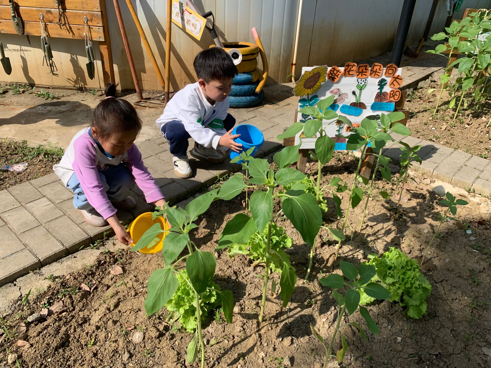 小满时节,植物需要充足的水分,农民伯伯在这个时节给农作物浇水灌溉。宝贝们也行动起来啦,他们来到种植地,用小桶为植物灌溉。孩子们通过浇水、照顾农作物,体验农事耕种过程,感悟自然生长的力量。孩子们还一起创作了有趣的作品,展现了小满节气欣欣向荣的景象,感受着传统节气的魅力。